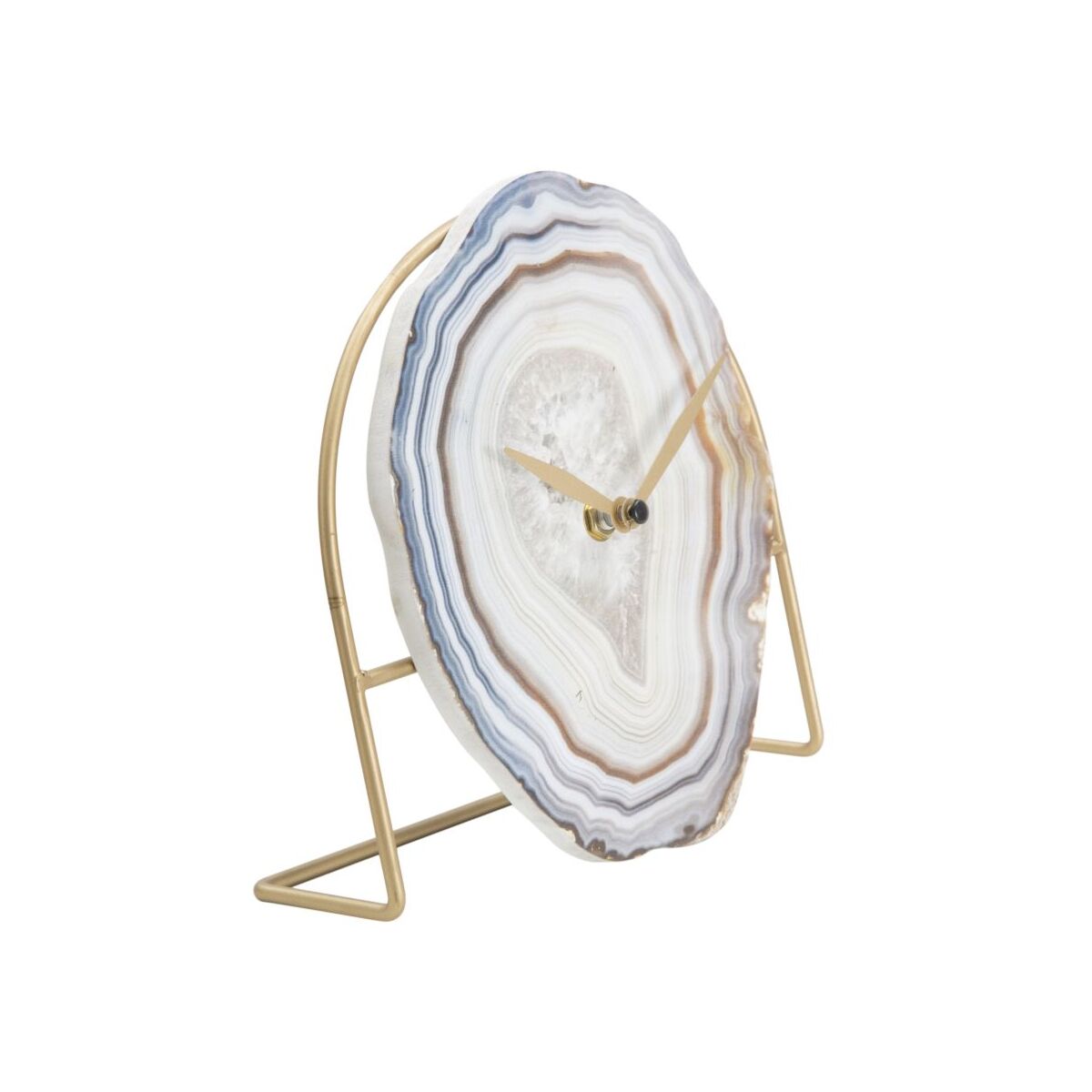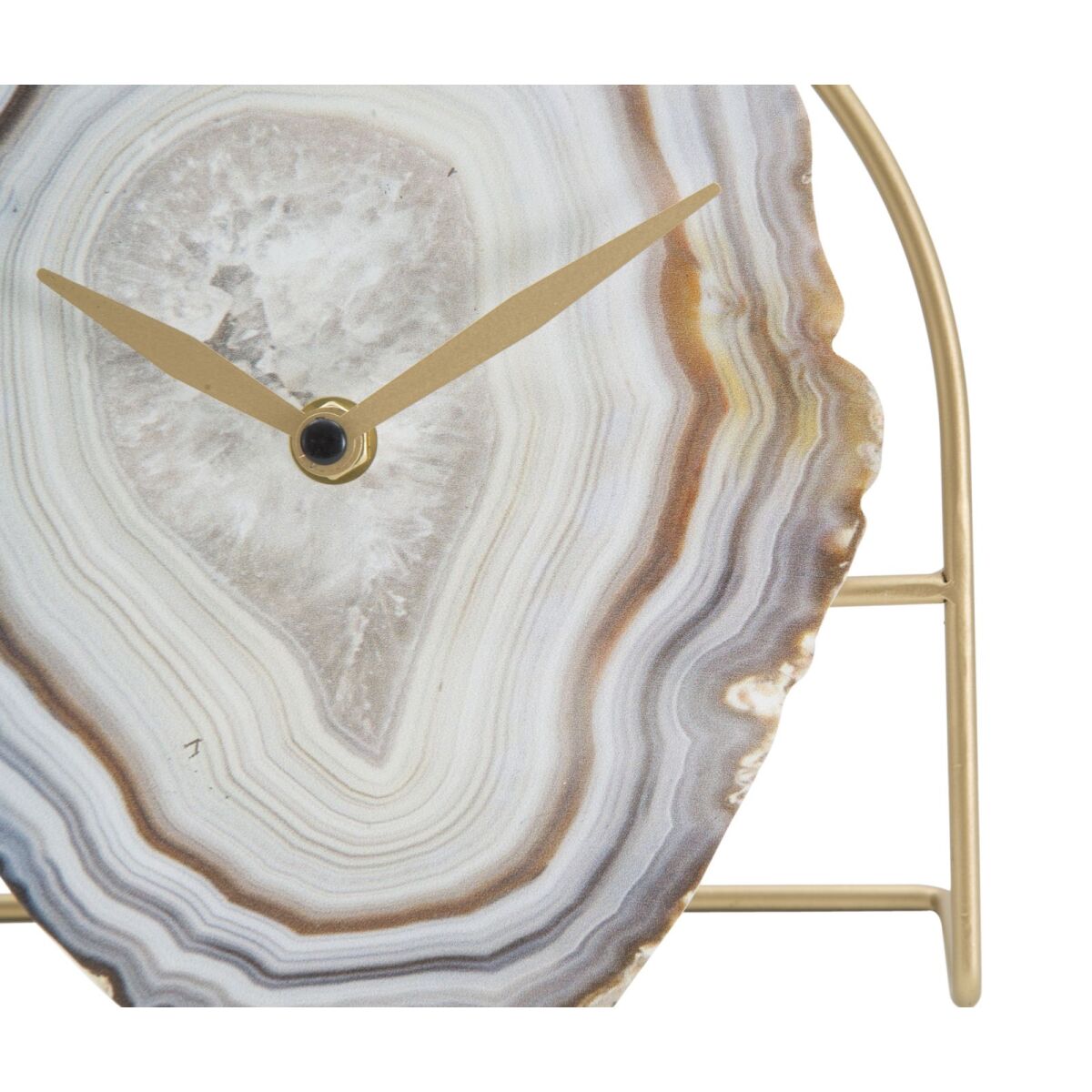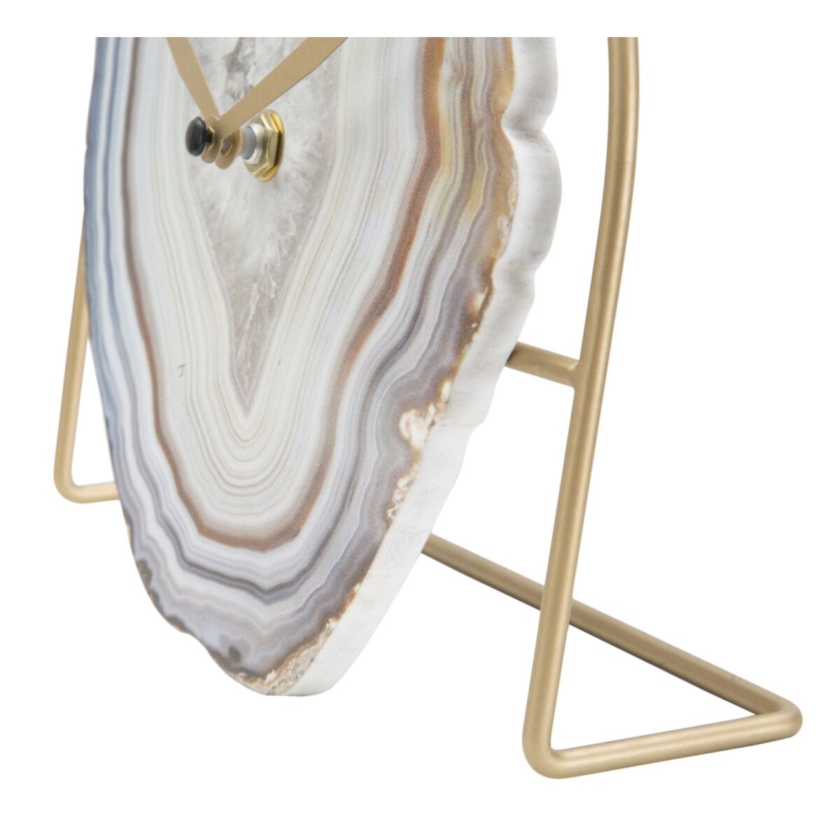 The TWIN-A table clock brings together modern glam style and artistic design. Its gold-toned metal frame and geode-inspired dial make it a standout piece on any desk, shelf, or console. Measuring 20x7x19.5 cm, it’s the perfect size for both home and office. Made from iron and MDF, this clock is both sturdy and stylish. Runs on 1xAA battery (not included), making it easy to place anywhere you like.
