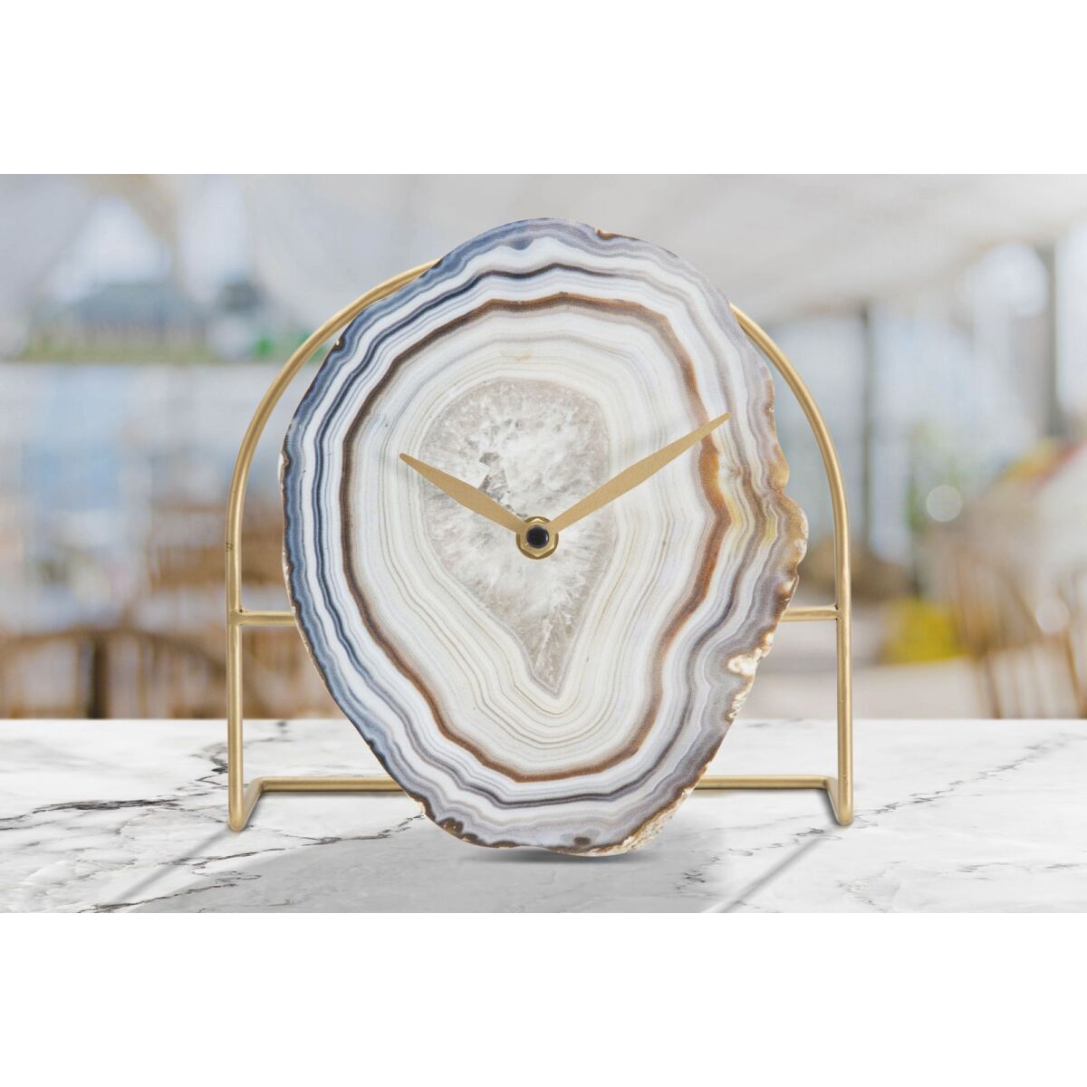 Add a touch of glamour with the TWIN-A table clock. Gilded metal and a geode-inspired dial create a striking, elegant accent for any room.
