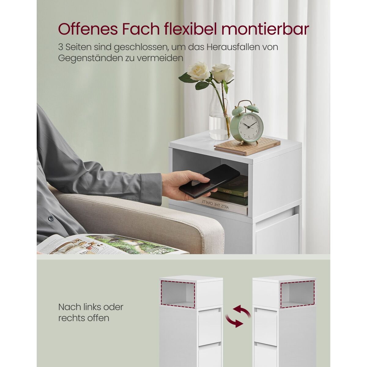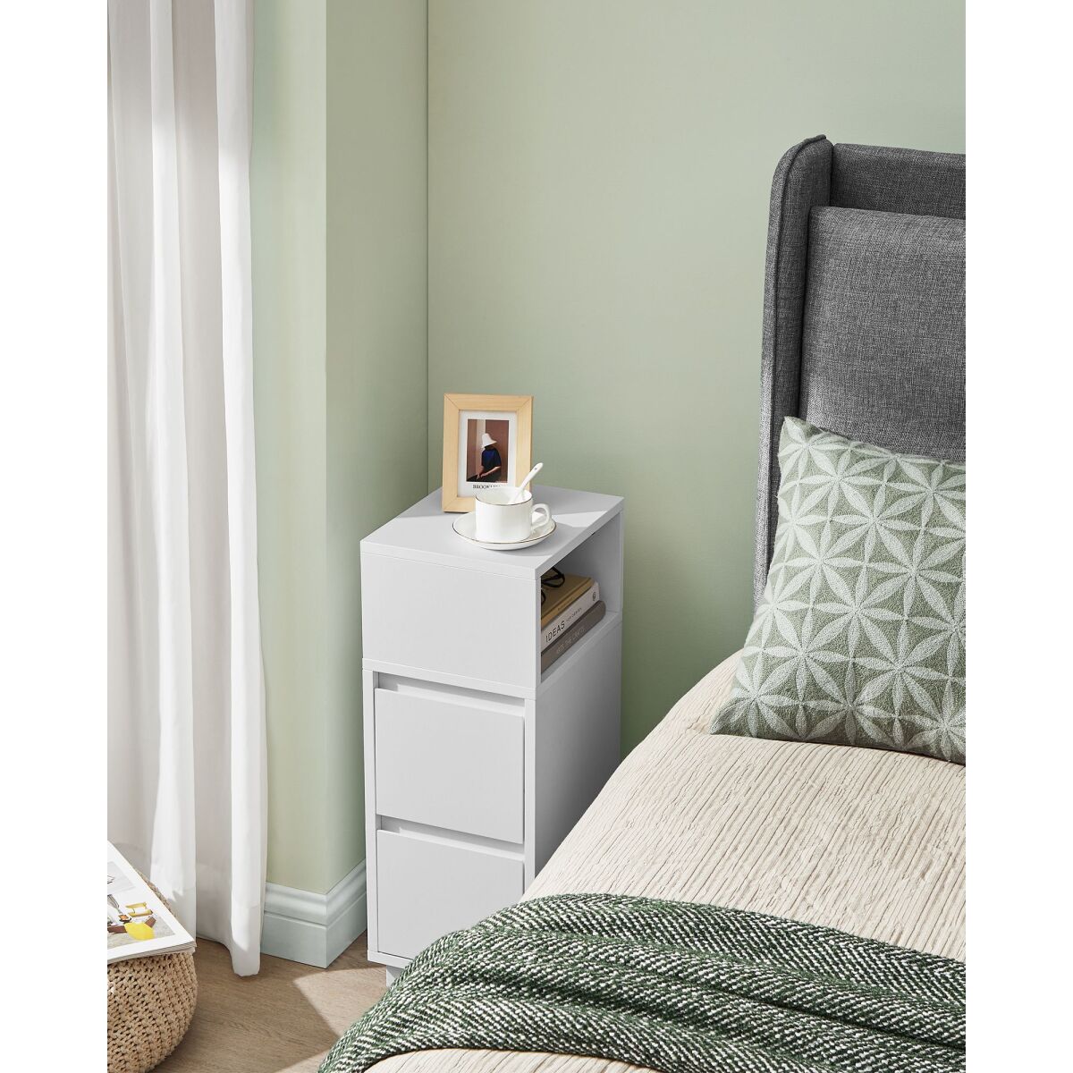 VASAGLE kitsas öökapp pilvevalges toonis on ideaalne lahendus neile, kellel on piiratud ruum. Kahe sujuva sahtli ja paindlikult paigutatava avatud riiuliga saad kõik vajaliku mugavalt käeulatusse. Vastupidavast puitlaastplaadist ja MDF-ist valmistatud kapp sobib nii voodi kui diivani kõrvale. Lihtne ja stiilne disain sobib igasse tuppa ning kerge kaal muudab selle liigutamise lihtsaks. Praktiline valik magamis- või elutoa korrastamiseks.