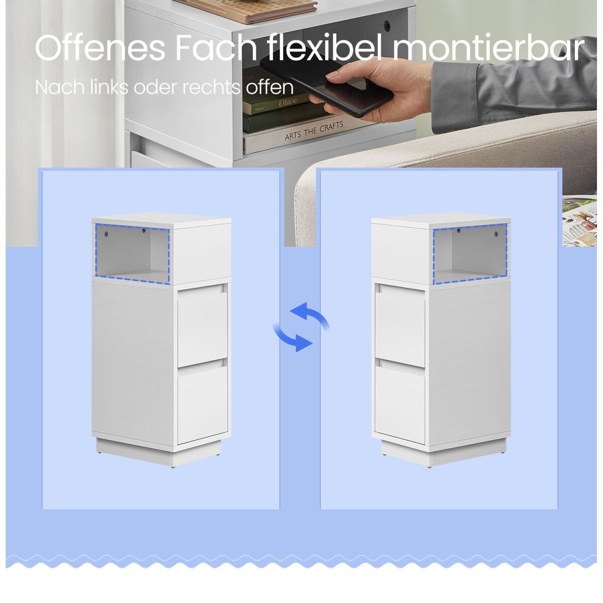 See kitsas öökapp kahe sahtli ja avatud riiuliga on ideaalne magamistuppa või elutuppa. Pilvevalge värv toob kaasaegse ilme igasse ruumi.