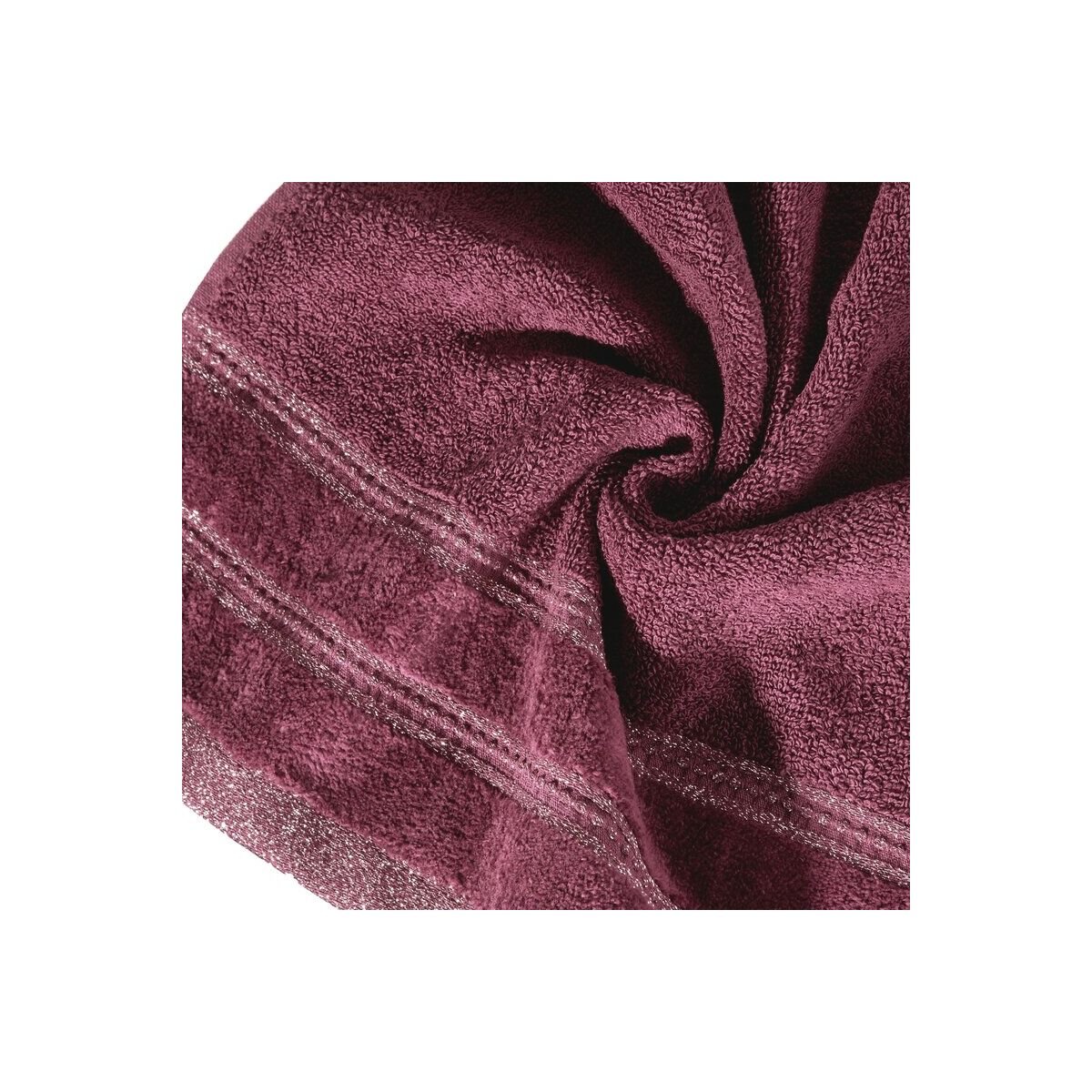 Klassikaline vannirätik pehmest ja hästi imavast froteepuuvillast. Minimalistlik veluurnööriga äär ja läikiv metallniit. Sügav burgundiatoon, 50×90 cm.
